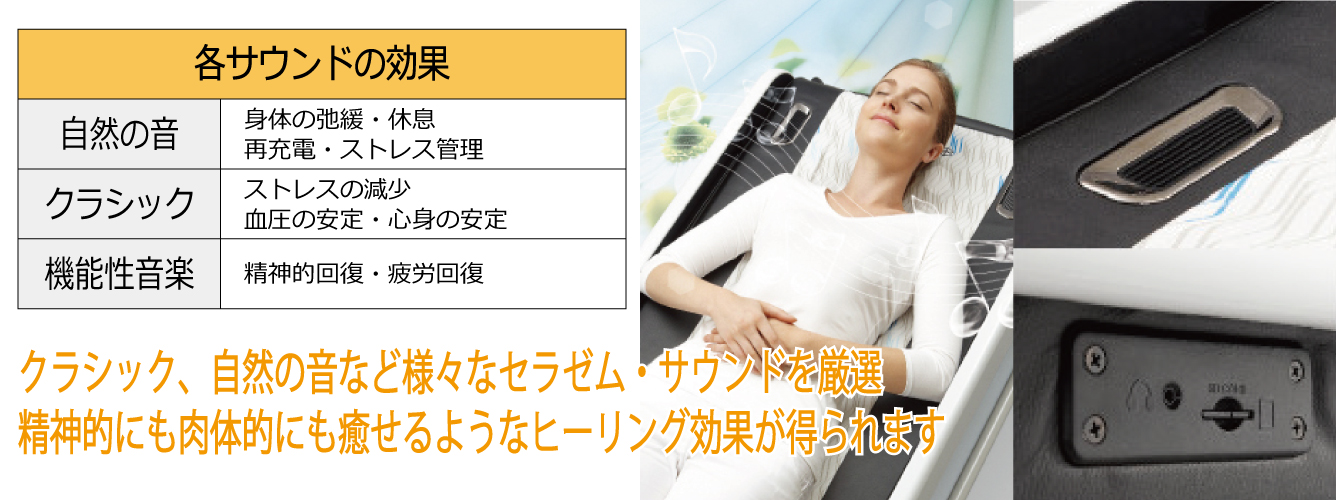 など、ヒーリングサウンドを選べます。
